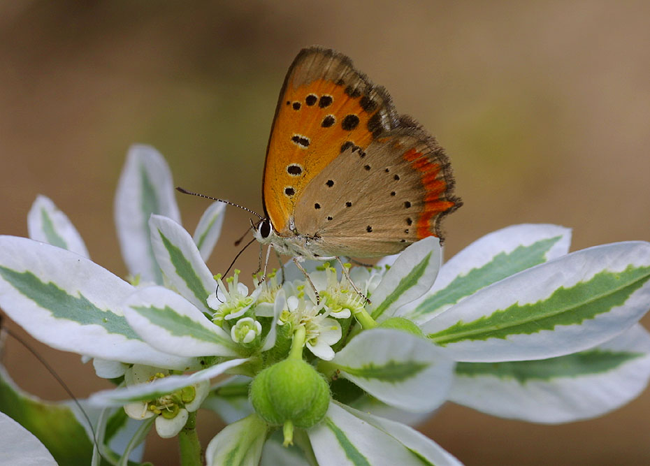 ベニシジミ 9月には目立つ蝶、よくニラの花などで吸蜜しています